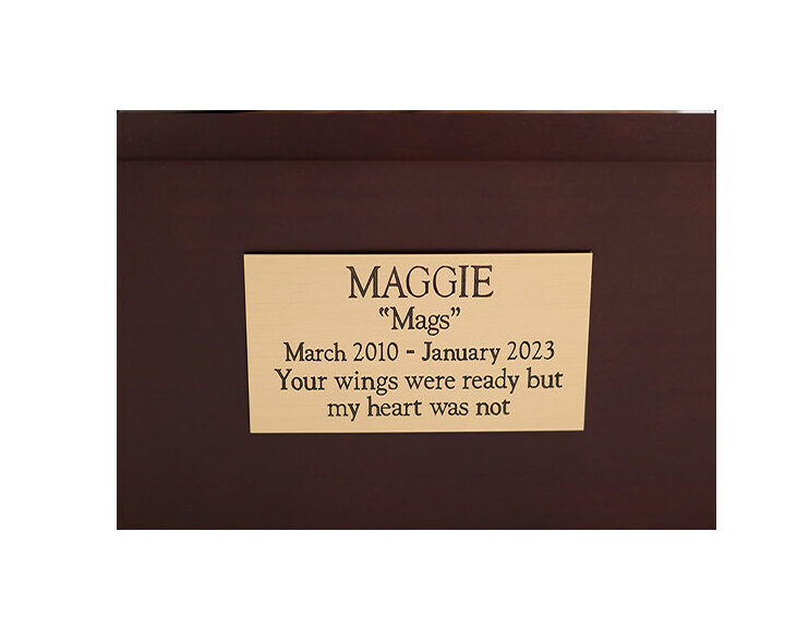 This plate can be attached to the following products: Traditional Urns, Figurine Urns, Tower Urns, and Horse Urns. (For Vase Urns and K-9 Cottage Urns select Indoor Brass Nameplate #2.)